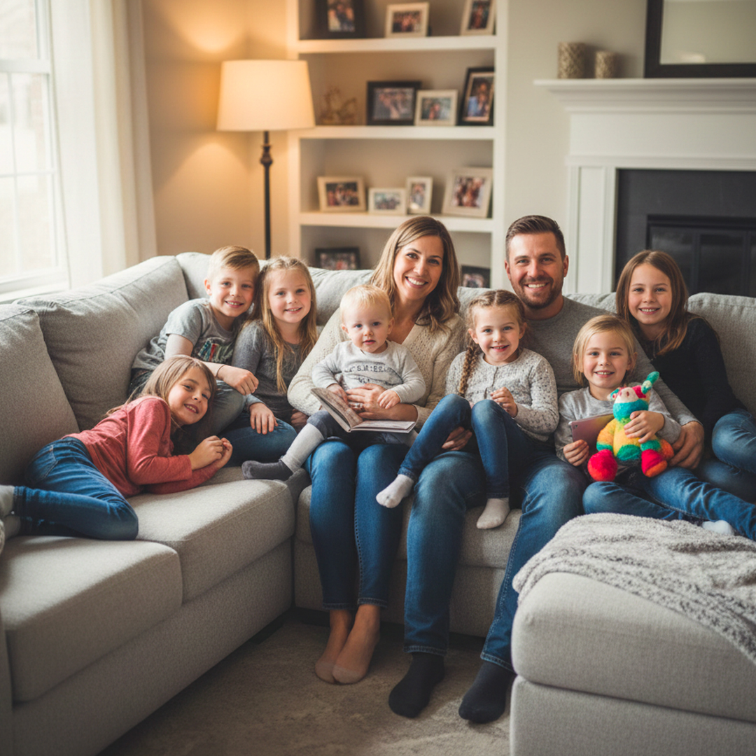 De første årene var intense. Støyende. Utmattende. Men også dypt vakre. Barna vokste opp sammen, delte rom, hemmeligheter og krangler. Léa , den yngste, integrerte seg alltid sømløst i familien, som om hun alltid hadde vært der.