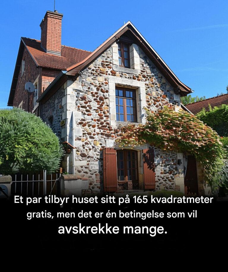 Tenk deg: et stort toetasjes hus med 165 kvadratmeter boareal, en terrasse, en dobbel stue og tre soverom. Og alt dette … gratis. Nei, dette er ikke en spøk, men den noe sprø ideen til et svensk par som ønsket å selge huset sitt. Men bak denne gylne muligheten ligger det en liten hake som kan avskrekke mange. Ville du bli fristet?