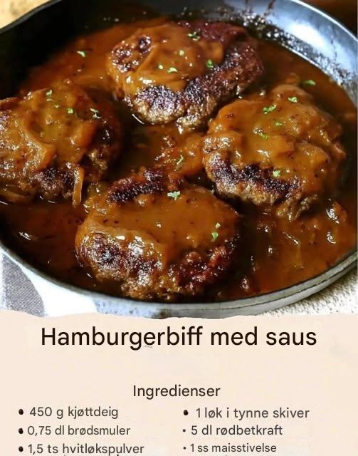 🥩 Komfortklassiker: Hjemmelaget hamburgerbiff med rik løksaus