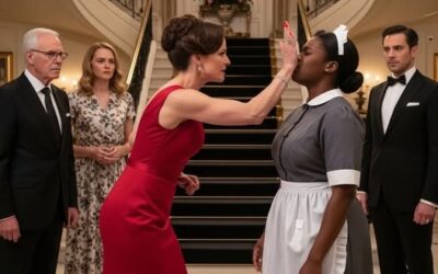 Støtet ga gjenlyd gjennom den store salen som et skudd. Naomi Hart, kledd i en elegant grå tjenestepikeuniform, vaklet bakover…