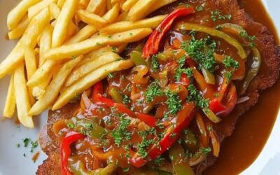 🥩 Schnitzel med paprikasaus og pommes frites 🍟 Ingredienser (4 porsjoner) Schnitzel: 4 schnitzler (svin eller kalv) Salt og pepper…