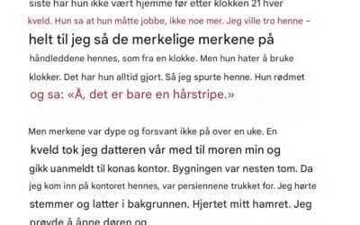 Kona mi begynte å komme hjem etter klokken 21 med rare merker på håndleddene – så en kveld dukket jeg uanmeldt opp på kontoret hennes.