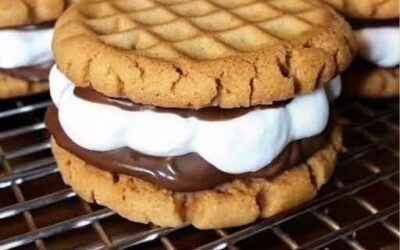 Ta med deg bålet inn med disse dekadente peanøttsmør-s'mores-sandwichkjeksene! Myke, seige peanøttsmørkjeks har et klissete marshmallowfyll med en nostalgisk vri…