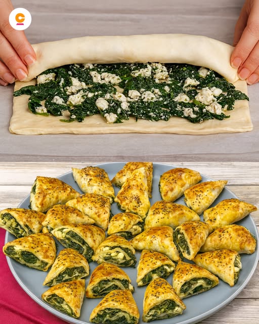 Disse spanakopita-trekantene er inspirert av den tradisjonelle greske spanakopita-paien . Det er en enkel vegetarisk forrettoppskrift som gir deg all smaken og teksturen til spanakopita i en lettspiselig form i små biter . Disse spanakopita-trekantene er sprø på utsiden, med et kremet spinat- og fetafyll .