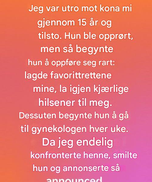 Etter femten års ekteskap gjorde jeg den typen feil som knuser tillit og etterlater et arr i hjertet – jeg var utro mot min kone. I flere uker levde jeg med skyldfølelsen, ute av stand til å spise, sove eller se henne i øynene. Hemmeligheten veide så tungt at den begynte å forgifte hver samtale, hvert lille øyeblikk med stillhet mellom oss.